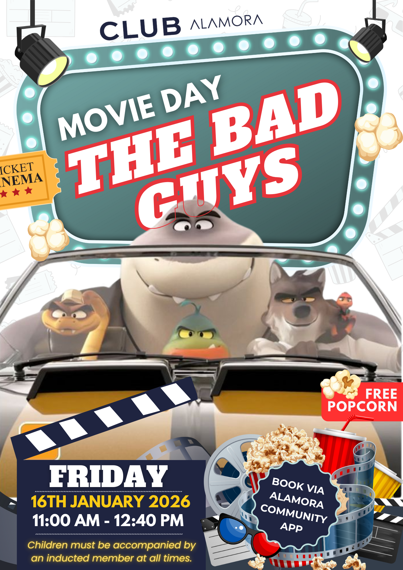 Slow things down and enjoy a cosy morning at Club Alamora Movie Day, featuring The Bad Guys.